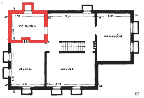Kellergrundriss), der Luftschutzraum ist damit der kleinste Kellerraum. Für ein