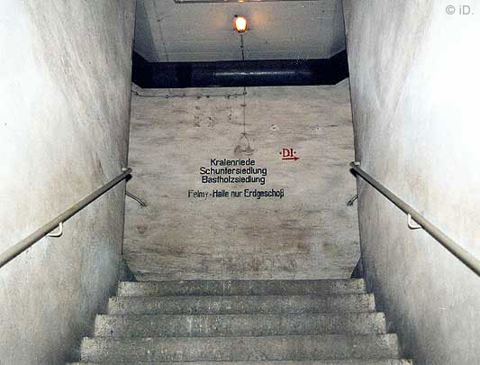 Schutzsuchenden aufnahmen. Diese Unterteilung in einzelne Kammern sollte zusätzlichen Schutz bei befürchteten Bombendurchschlägen bieten. Der Bunker