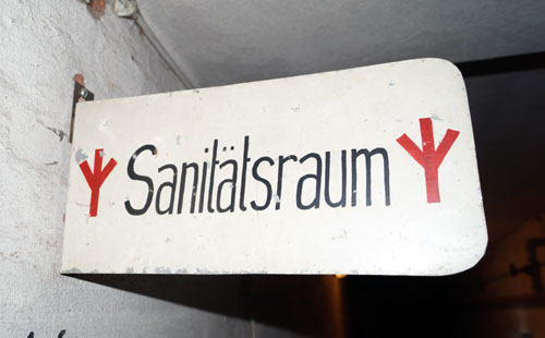 usw. Die noch vorhandenen Überdruckventile wurden laut Typenschild 1942 hergestellt, die phosphoreszierenden Orientierungsmarkierungen an Wänden und Treppen