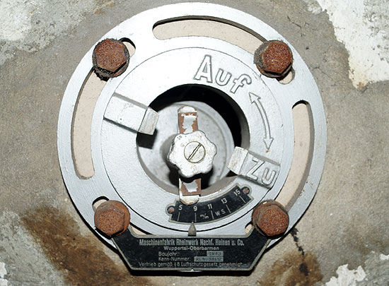 vor den befürchteten Gasangriffen konnte in den Bunkern ein leichter Überdruck von bis zu 30 mBar erzeugt werden.