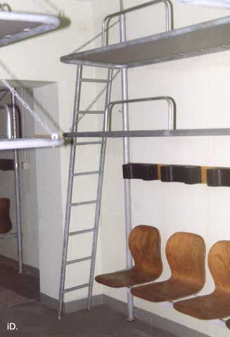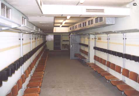 Vorlaufzeit wäre der Bunker einsatzfähig gewesen. Die Einrichtung war einfach aber zweckmäßig: Klappsitze mit Kopfstützen, Liegepritschen, Gepäckablagen.