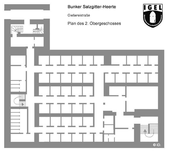 Der dreietagige Hochbunker Gießereistraße in Salzgitter-Heerte wurde im Rahmen der ersten Bunkerbauwelle von Dezember 1941 bis Juni 1942 errichtet und war für etwa 1000 Personen konzipiert.