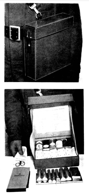 Luftschutz-Gastasche für Ärzte. Die Preise für die Ausrüstung waren amtlich festgesetzt. Die Ausrüstung und zu ergänzende Inhalte wurden normalerweise über die