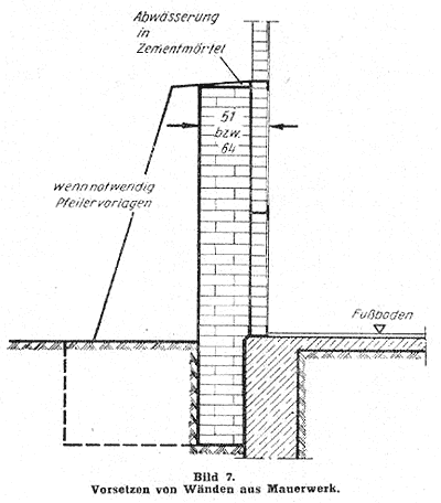 Das Zusetzen von Öffnungen ist nach Bild 10 auszuführen. Auf eine gute Verbindung (Verzahnung) der Vermauerung mit den anschließenden Wandteilen ist zu achten.